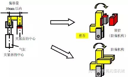 原則上夾緊器中心和夾緊面中心的偏移量應該在30mm以內。當偏移量超過30mm時,應該設置限位機構。